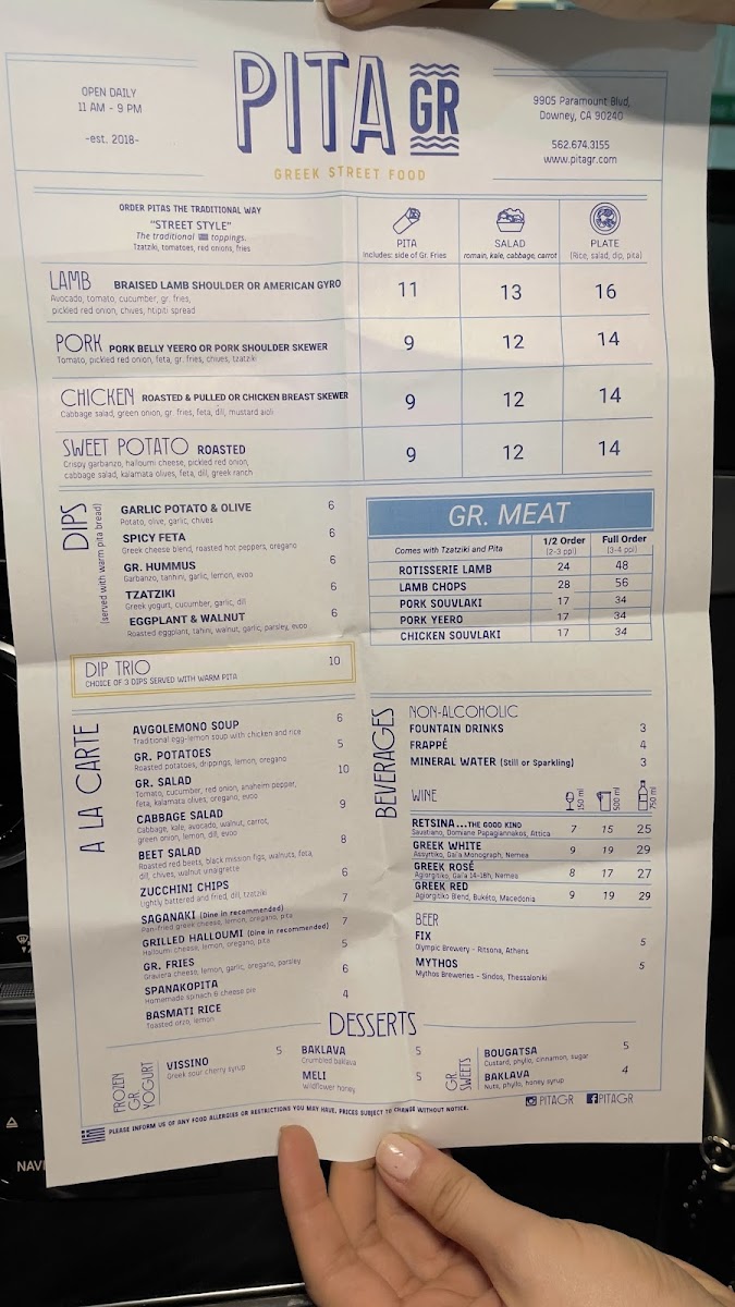 PITA GR Menu